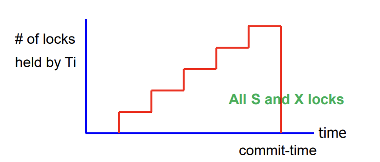 shrinking phase에서는 shared lock만 해제할 수 있고, exclusive lock은 commit/abort 시점에서 해제